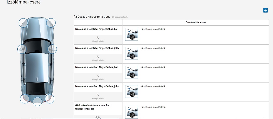 tulajdonosok és szerelők által is egyértelműnek tűnő izzólámpa-csere folyamat egyes típusoknál igen körülményes és hosszadalmas munkává vált. Ilyen esetekben az autószerelő információkat igényel az izzólámpák elhelyezkedésével, hozzáférhetőség és cseréjével kapcsolatban annak érdekében, hogy a vevő elvárásait teljesítse a legrövidebb idő alatt.